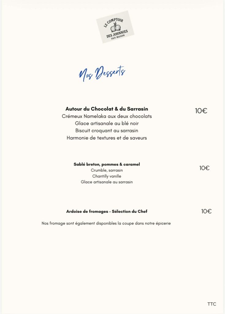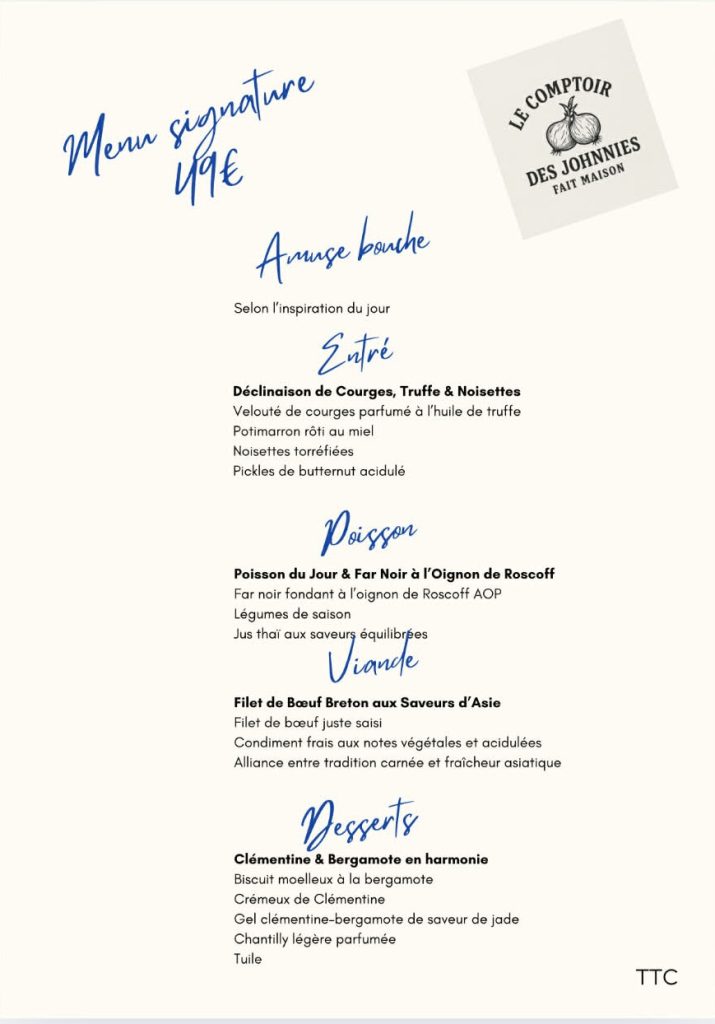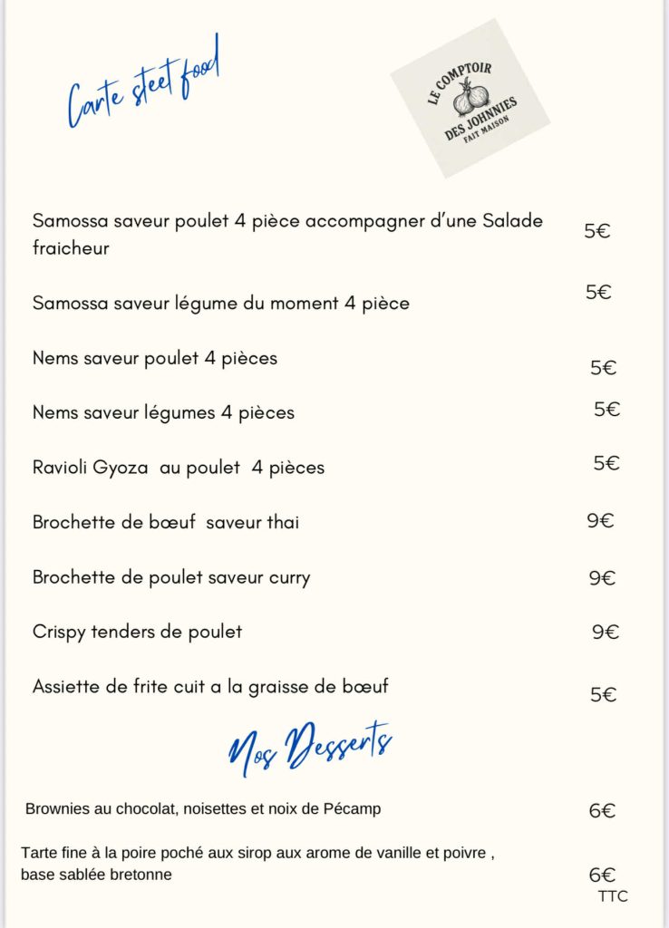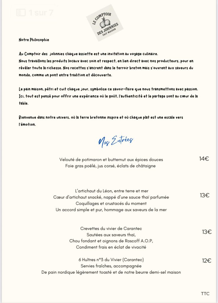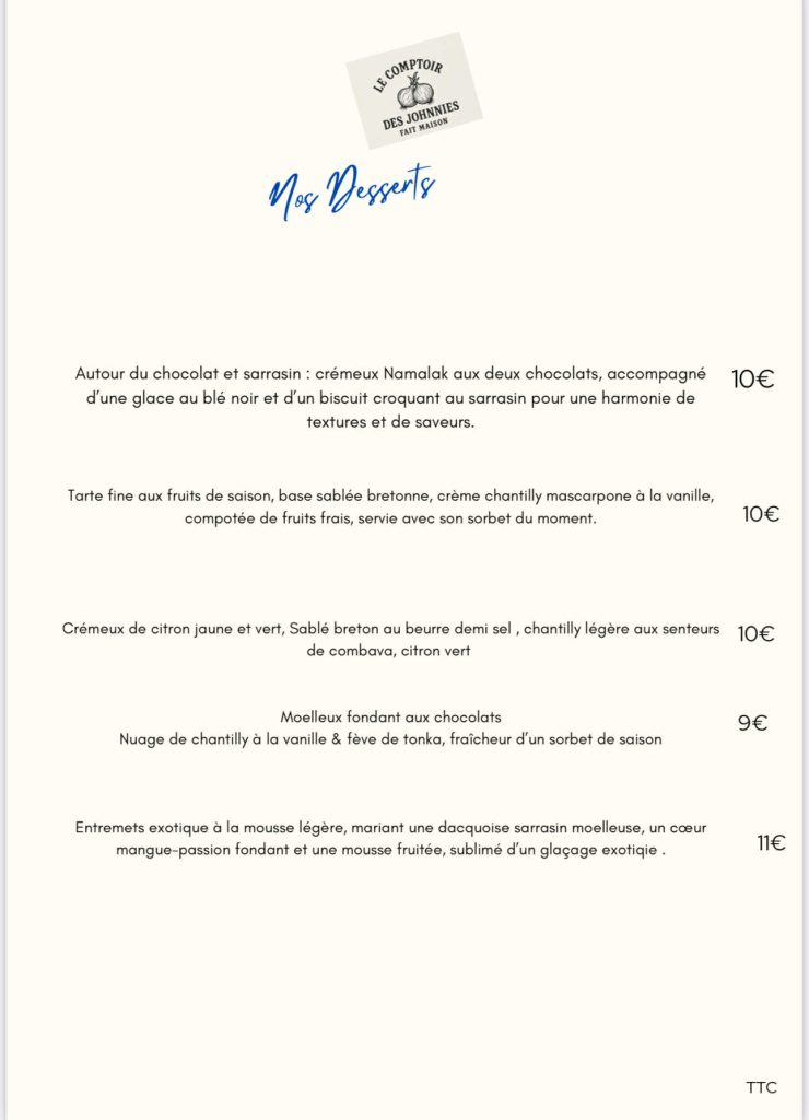Notre menu Au Comptoir des Johnnies, le fait maison et le local sont au cœur de notre cuisine ! Notre carte Nos formules Vente à emporter